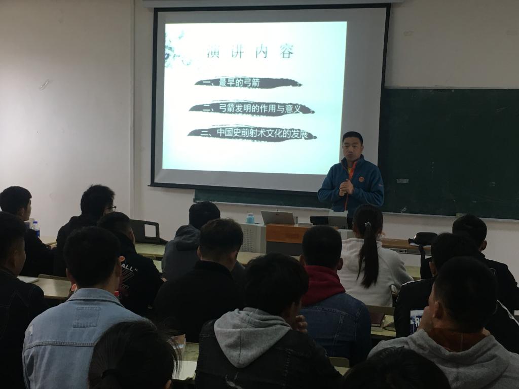 11月17日下午,米乐·M6(中国大陆)官方网站陈光华副教授在龙山校区体育馆多媒体教室为该院2016级、2017级休闲体育专业学生作题为“史前射术文化”的学术报告。