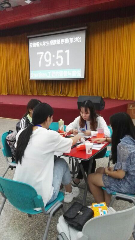 9月16日,由安徽省教育厅主办,合肥工业大学承办,安徽省桥牌协会协办的安徽省首届大学生桥牌锦标赛在合肥工业大学落下帷幕。共有来自省内6所高校14支队伍60余名运动员参加了本次比赛。竞赛项目包含公开团体赛、女子团体赛、公开双人赛、女子双人赛。