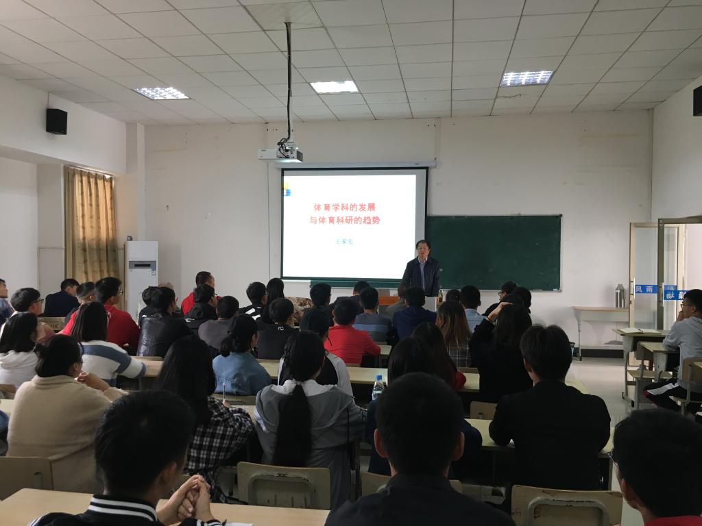 11月4号上午,应米乐邀请,国务院体育学科评议组成员、全国高校体育教学指导委员会技术学科组组长、全国学校体育专业委员会副理事长,苏州大学博士生导师王家宏教授在体育馆多媒体教室作了一场题为“体育学科的发展与体育科研的趋势”的学术报告。米乐·M6(中国大陆)官方网站的体育康复和体育教育专业本科生和部分教师聆听了本次报告,报告会由米乐·M6(中国大陆)官方网站院长章翔教授主持。