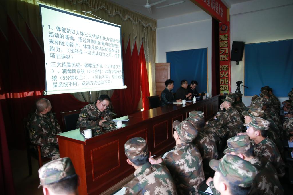 3月3日下午,米乐章翔教授应邀到安徽省武警特战集训队作题为“武警战士的体能训练”专题报告。安徽省武警总队部分领导以及从全省选拔出的300名武警特战队员参加了报告会。报告会由安徽省武警总队情报处副处长,本次特战集训大队王胜大队长主持。