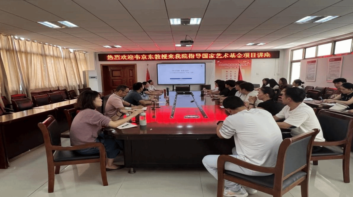 韦京东教授首先对国家艺术基金的发展历程做了简单的介绍,然后对青年艺术创作人才资助项目的申报规则、实施进展等作了详细的讲解与分析。提出:守正创新“变”与“不变”的辩证统一,“本根不摇,则枝叶茂盛”,只有在创新过程中保持守正,坚定选择,才能保持定力,坚定不移的走中国特色社会主义文化发展道路,才能焕发出更强大的活力与生机。最后,韦京东教授以国家艺术基金项目“严派”为例,生动、直观、形象地为与会人员介绍了项目申报、实施经验和项目成效积累。同时,也结合我院的实际情况,提出了国家艺术基金项目申报的针对性建议。