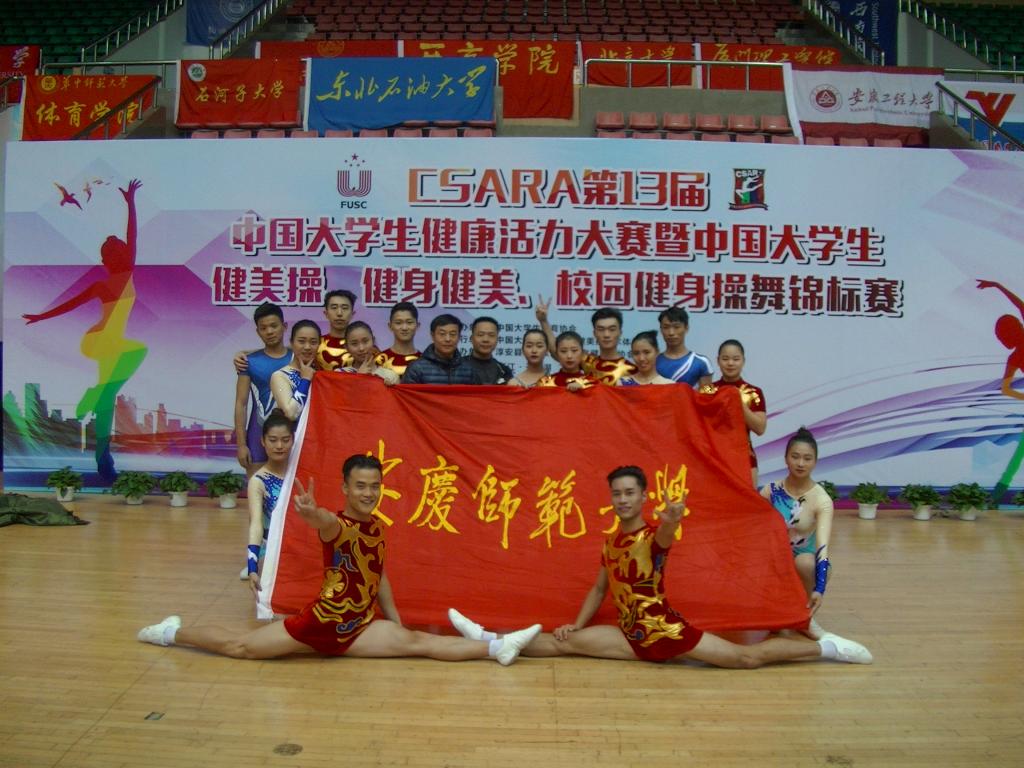 经过顽强拼搏、激烈角逐,一举夺得体育院校B组规定-男子五人操第一名、体育院校B组规定-混合三人操第四名、体育院校B组规定-混合双人操第六名、普通院校A组规定-女子五人操第五名、普通院校A组规定-混合三人操第六名的优异成绩,向全国各高校充分展示了我校大学生精湛的技术水平、高超的竞赛能力和现代大学生追求积极向上的精神风貌,是我院体育艺术表演专业又一丰硕成果的体现,扩大了我校在全国的知名度和影响力。
