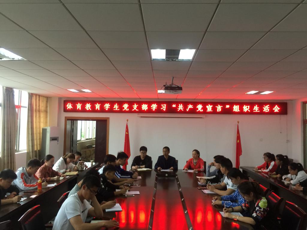 5月7日,米乐·M6(中国大陆)官方网站体教专业学生党支部召开组织生活会,学习交流《共产党宣言》。生活会由支部书记程启平老师主持,支部委员周玉华老师、陈守朋老师、全体学生党员及本期发展对象近30人参加了交流学习。