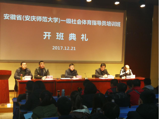 2017年12月21日—22日,由安徽省体育局社会体育指导中心主办,安庆市教育体育局和我院联合承办的“2017年安徽省一级社会体育指导员培训班”在我校圆满结束。