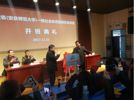 本次开班典礼上还为安庆市二级社会体育指导员安庆师范大学基地进行了揭牌。