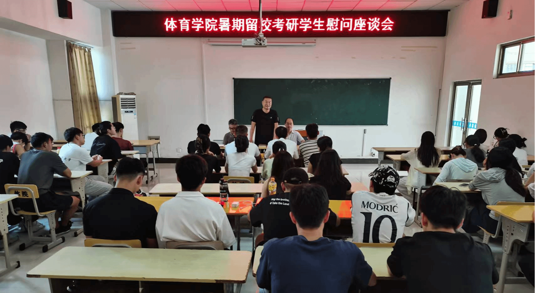 7月23日,米乐·M6(中国大陆)官方网站院长周多奇、党委副书记王玮和副院长王晓东一行深入教室、健美操馆和舞蹈房,召开留校考研学生座谈会,并走访慰问了暑期赛事集训学生。