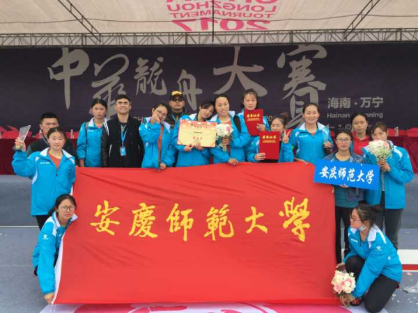 2017年2月24日至27日,由国家体育总局和中华龙舟协会主办的中华龙舟大赛首站在海南万宁市成功举办。由米乐·M6(中国大陆)官方网站武术体操教研室许贵泉主任担任领队、王晓东博士和市水上运动中心李永存指导担任教练的安庆师范大学女子龙舟队首次出现在这一全国最具影响力的龙舟赛事中。经历三天艰苦的赛程,校龙舟队在职业组女子比赛中获得200米、500米两项第五名和总成绩第六名,圆满完成了此次征战。