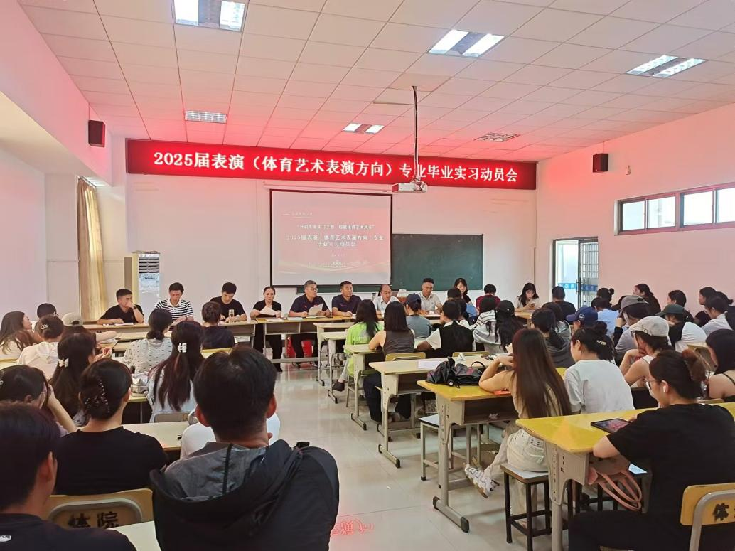 9月13日,米乐·M6(中国大陆)官方网站召开了“开启专业实习之旅,绽放体育艺术风采”——2025届表演(体育艺术表演方向)专业毕业实习动员会。米乐·M6(中国大陆)官方网站院长周多奇、党委副书记王玮、副院长王晓东出席动员会,体表专业负责人潮芳、实习实训中心主任钱振宇主任及实习指导老师、辅导员老师和2025届表演(体育艺术表演方向)专业毕业生参加了会议。会议由王晓东主持。