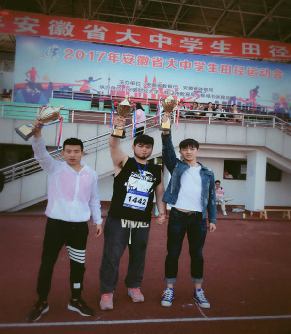 4月25日,我校田径队在张孝民、何青、张加军、孙鹏四位教练员带领下赴安徽财经大学,参加了为期一周的安徽省大学生田径运动会。本次比赛是由安徽省教育厅、安徽省体育局主办,全省74所高校1262名大学生参加此次大赛,比赛规格高,参赛队伍多。我校运动员参加了多个项目的角逐,经过运动健儿的奋力拼搏,我校共获得了7个一等奖、18个二等奖以及8个三等奖的好成绩。