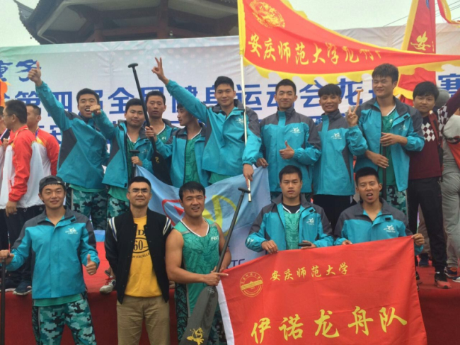 此次龙舟公开赛与安徽省第四届体育运动大会龙舟赛合并举办,规格高、对手强,共有全省十支高校参赛,其中不乏中国科技大学、合肥师范学院等老牌强队。在校体艺委支持下,安庆师范大学第一次组队参加,由许贵泉、王晓东二位老师担任领队和教练。虽时间仓促,从组建队伍到正式比赛总共不过二十天,但龙舟队队员们群情激奋、训练刻苦,在安庆市水上运动中心的指导和伊诺体育文化传媒的帮助下,成绩进步惊人。10月20日预赛当天,安庆师大龙舟队一鸣惊人,以100米成绩第二、200米成绩第一双双冲进决赛;在10月21日决赛中再度出彩,以积总分第二的成绩夺得大赛一等奖。