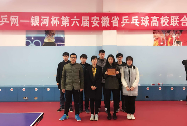 2017年2月17日至19日,由安徽省乒乓球协会主办的省第六届高校超级杯乒乓球比赛在合肥市乒协活动中心举行。我校由米乐·M6(中国大陆)官方网站陈国元老师为教练,以汪聪、史敬宇、王永旭、李锦四名男同学和汪钰、杨雪姣、李荣、任茜若四名女同学为队员的代表队参加了此次比赛。经过激烈角逐,我校女子乒乓球队获得季军。