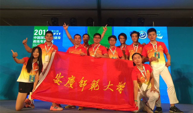 2016年第七届中国国家职业健身教练专业大会在北京国际会议中心隆重举行,来自全国各省市及港澳台地区共52支代表队参加了大会,其中安庆师范大学代表队是其中唯一一所高校大学生组织参加的代表队。