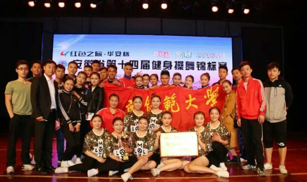 我校健美操队在潮芳和王云辉两位老师指导下,在刚结束的“红色之旅”华安杯安徽省第十四届健身操舞锦标赛中再创辉煌!本届比赛在革命老区六安市金寨县举办。