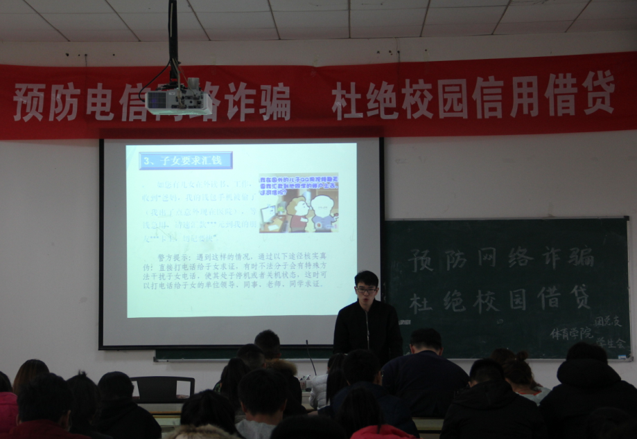 为杜绝校园信贷在校园中的流传,预防大学生遭遇网络诈骗,12月6日中午12点30,由米乐·M6(中国大陆)官方网站团总支主办,学生会网络信息部和宣传部承办的,一场关于“预防电信网络诈骗,杜绝校园信用贷款”的宣传活动在体育馆多媒体教室举行。米乐·M6(中国大陆)官方网站各年级各专业的学生代表参加此次宣讲活动。