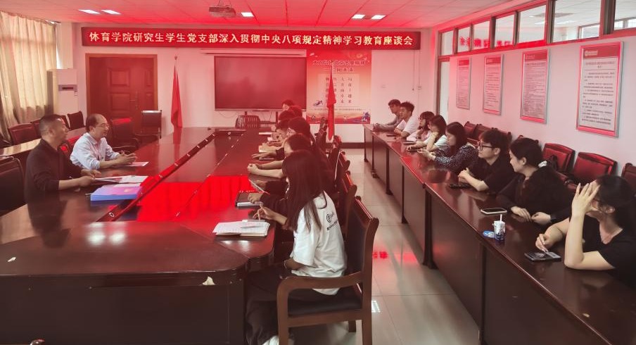 5月11日,米乐·M6(中国大陆)官方网站在体育馆三楼会议室召开深入贯彻中央八项规定精神学习教育座谈会。米乐·M6(中国大陆)官方网站党委书记王玮出席,研究生学生党支部书记程启平主持会议,支部党员参加座谈。