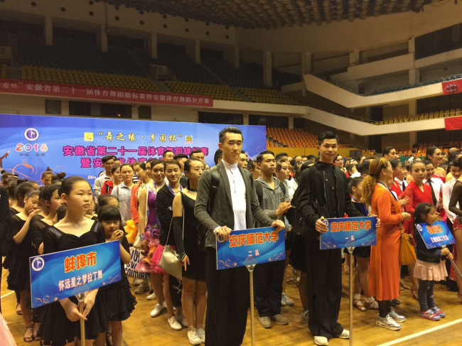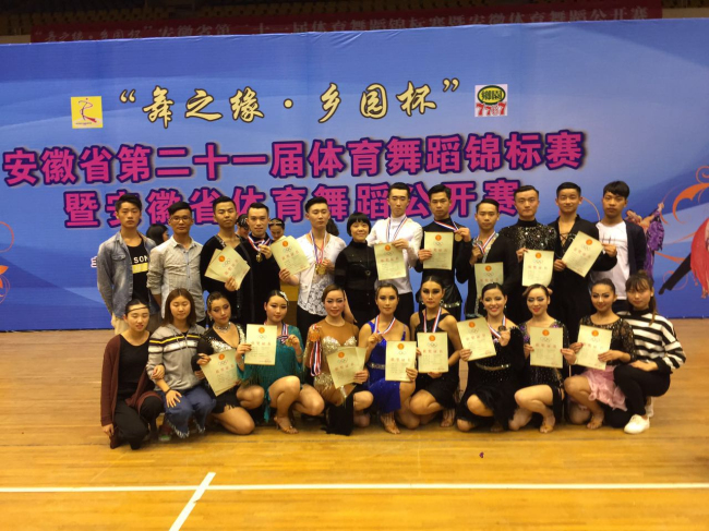 每年一届的全省体育舞蹈锦标赛,已走过了20个年头,来自全省14个市的33支代表队参加了本次比赛。在安徽省体育舞蹈界最高水平的竞技舞台上,我校学生取得的无论是个人还是团体成绩,均位于安徽省高校首位。比赛结束后,安徽省体育舞蹈界的业内人士对我院学生的精彩表现给予了高度称赞,并对我校体育艺术表演专业的办学成果给予了充分肯定。(陈诚)