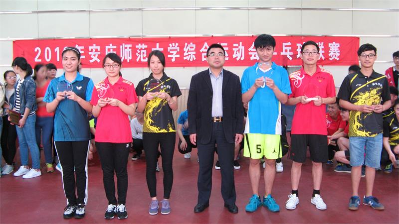章翔颁奖并致辞。他代表大赛组委会向为筹备本次比赛而付出辛勤劳动的全体人员表示衷心的感谢,向取得优异成绩的各位运动员表示热烈的祝贺。他指出:本次乒乓球联赛参赛队伍多、时间长。全体裁判员和工作人员认真负责、公正执法,确保了比赛的顺利进行;全体运动员秉承着“友谊第一、比赛第二”的竞赛精神,在比赛中顽强拼搏,奋勇争先,展现了我校大学生积极向上、自强不息的进取精神;弘扬了“团结合作、勇于创新、拼搏进取、为国争光”的国球精神。最后他希望全体运动员在今后的学习和生活中继续发扬运动场上永不言败、永不服输的拼搏精神,积极参与、团结协作,为我校体育工作能迈上一个新的台阶而努力奋斗!