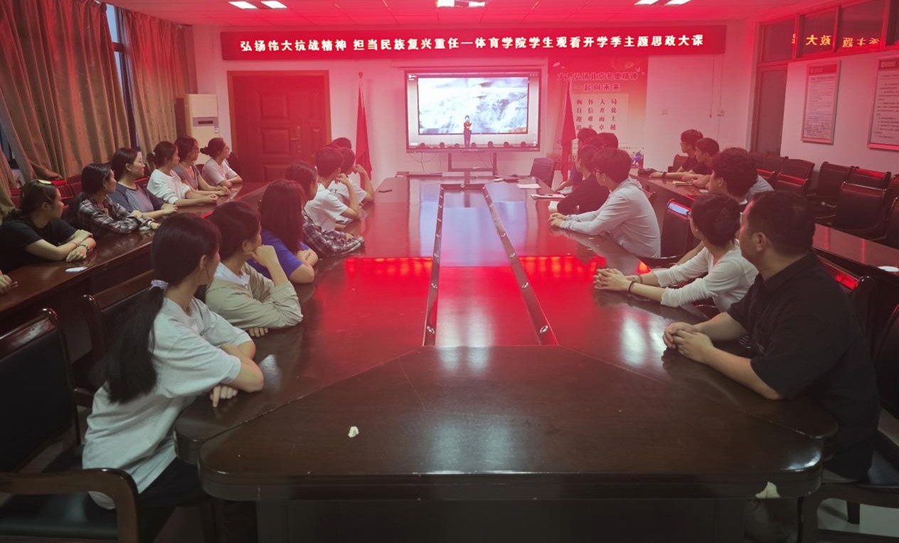 9月18日,米乐·M6(中国大陆)官方网站以“弘扬伟大抗战精神、担当民族复兴重任”为主题,在体育馆三楼会议室组织学生集中观看开学季主题思政大课。本次活动由米乐·M6(中国大陆)官方网站团委负责人主持,米乐·M6(中国大陆)官方网站学生会成员、学生党员参加学习。