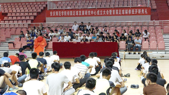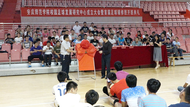 6月3日下午,校体艺委在体育馆举行安庆师范学院足球辅修班开班典礼暨“安庆师范学院足球发展研究中心”揭牌仪式。副校长、校体艺委主任张群,米乐·M6(中国大陆)官方网站全体党政领导、足球辅修班和足球发展研究中心全体人员及米乐·M6(中国大陆)官方网站各专业近200余名同学共同参加了开班典礼暨揭牌仪式。米乐·M6(中国大陆)官方网站党总支副书记周多奇主持了开班典礼暨揭牌仪式。