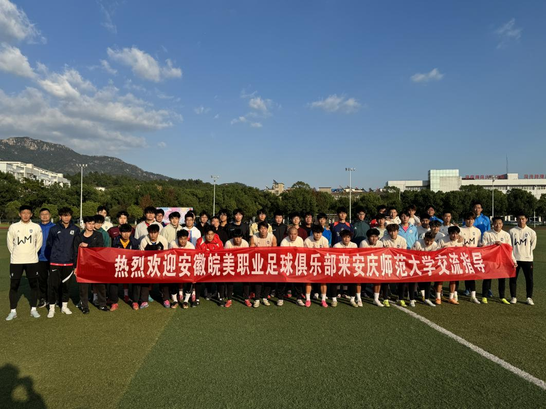 2025年11月22日,安徽皖美职业足球俱乐部受邀来到安庆师范大学校园,与我校足球队进行了一场精彩的友谊赛交流。