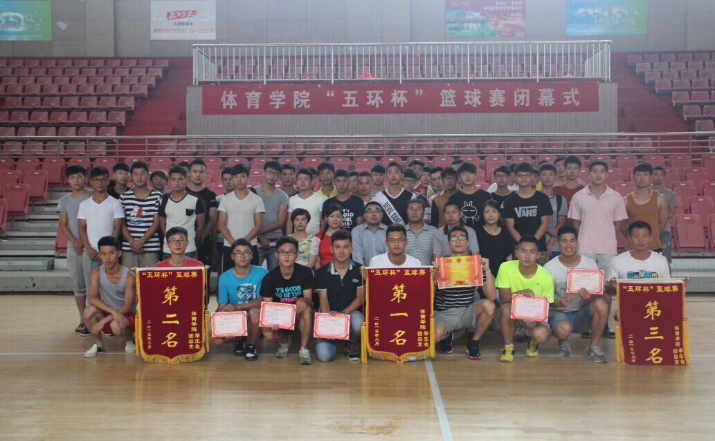 由体育学院团总支学生会主办,学生会体育部承办的2015“五环杯”篮球赛于近日落下帷幕,6月17日中午,在体育馆室内篮球场隆重举行本次比赛的闭幕仪式。米乐·M6(中国大陆)官方网站党总支副书记周多奇,副院长章翔,各年级辅导员老师以及学生工作办公室的负责老师都应邀参加了闭幕式。