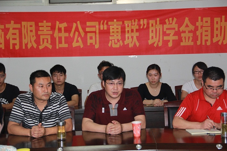 首先,学院学生资助工作专管老师鲁雷介绍了2015年“惠联”助学金的评审办法,院团总支副书记汪洋老师宣读布了评审结果。紧接着由惠联科技电脑有限公司董事长余贤良先生为受助学生颁发助学金。