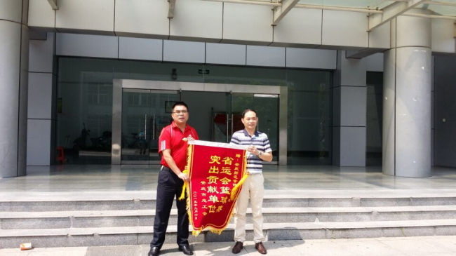 9月7日上午,安庆市总工会、安庆市供水公司工会领导一行将写有“省运会篮球赛,突出贡献单位”的锦旗送到米乐·M6(中国大陆)官方网站副院长章翔手中,以此表示对担任安庆市职工篮球代表队主教练宣暄老师的感谢。