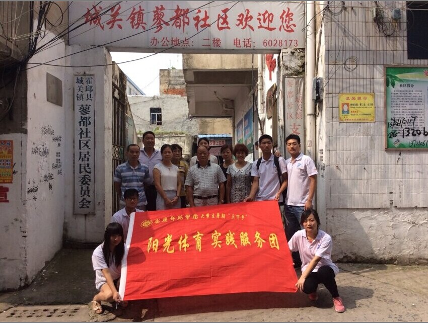 为进一步贯彻共青团中央、团省委关于进一步加强大学生暑期社会实践活动的相关文件精神,引导广大青年学生培育和践行社会主义核心价值观,为社会发展尽青年的责任,提高青年学生的社会责任感和社会适应能力,在米乐·M6(中国大陆)官方网站团总支的精心策划下,我院2014年暑期“三下乡”社会实践校级重点团队“阳光体育实践服务团”在六安市霍邱县展开了为期五天的以“健康体育下乡镇、进社区,科学健身指导”为主题的暑期社会实践活动。