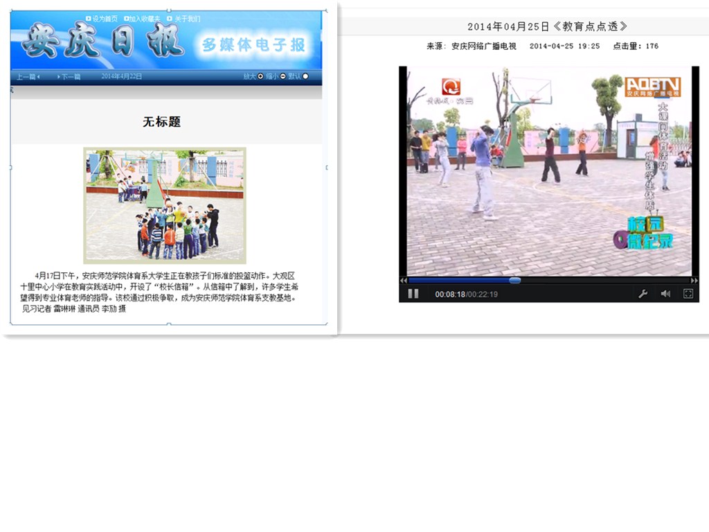 本次活动不仅为米乐·M6(中国大陆)官方网站学生教学提供了一个良好的平台,增强了我院学生的课堂教学能力;也让小学生们深刻感受到了体育活动的无限乐趣与魅力,让他们在学习期间得到了充分的体育锻炼,培养了小学生综合实践课程意识。此次活动受到了安庆市十里中心小学师生们的一致认可与肯定。同时本次活动在安庆日报以及安庆教育网均被宣传报道,也由安庆教育“安庆教育点点透”栏目全程录制报道。(张强)http://vod.aqbtv.cn/2014-04/25/cms248917article.shtml