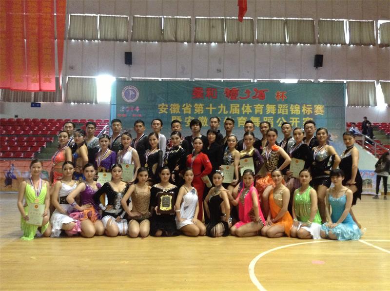 5月2日至3日,2014年安徽省第十九届体育舞蹈锦标赛暨安徽省体育舞蹈公开赛在蚌埠体育馆隆重举行,米乐·M6(中国大陆)官方网站2011级、2012级和2013级体育艺术表演专业体育舞蹈专项班的学生在夏尚群和潘磊两位老师带领之下,参加了此次大赛。经过激烈竞争,我院学生最终在安徽省第十九届体育舞蹈锦标赛上获得5项冠军、3项亚军和3项季军,并获得团体第一名和团体拉丁表演舞冠军;在安徽省体育舞蹈公开赛上获得7项冠军、3项亚军,并在技术等级赛中获得5个一等奖。