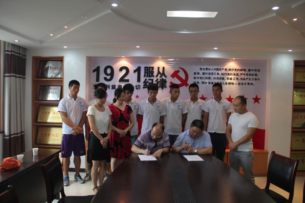 为进一步贯彻落实党的教育方针,为广大青年学生投身社会实践活动搭建一个良好的平台,7月4日上午,米乐·M6(中国大陆)官方网站和宜秀区大龙山镇燎原社居委共同签订了大学生社区体育指导社会实践活动基地协议书,并举行了实践基地揭牌仪式。学院党总支副书记韦长发,院学生工作办公室主任鲁雷,团总支副书记、学生工作办公室副主任汪洋等老师和赴燎原社区参加暑期“三下乡”社会实践活动的学生共计20余人参加了实践基地挂牌仪式。
