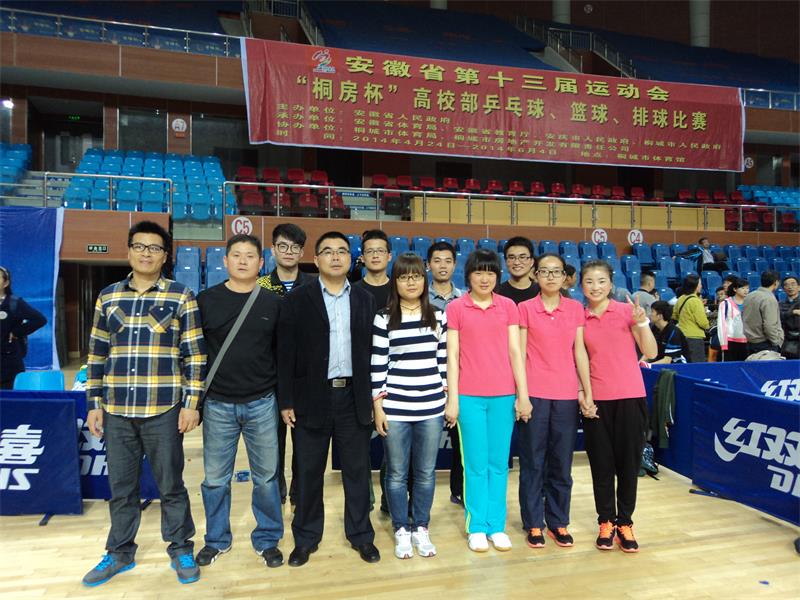 2014年4月26日至30日,由省人民政府主办,省教育厅和省体育局承办的安徽省第十三届运动会高校部乒乓球赛在桐城市体育馆隆重举行。我校派出了以米乐·M6(中国大陆)官方网站副院长、校体艺委常务副主任章翔为领队,以米乐·M6(中国大陆)官方网站陈国元、黄安泉两位老师为教练,以来自全校六个学院的四名男同学和四名女同学为队员的代表队参加了此次甲组比赛。最终经过五天的激烈角逐,我校代表队取得了骄人的战绩。