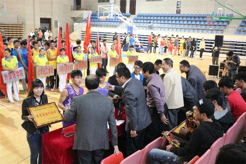 在闭幕式上,总裁判长林秋菊老师宣布了获得“体育道德风尚奖”的代表队名单、“优秀运动员”名单和本次联赛的比赛成绩。来自全校14个学院的20支代表队经过9天、45场比赛的激烈鏖战,最终数学与计算科学学院、物理与电气工程学院、计算机与信息学院、化学化工学院分获男子组前四名;外国语学院、经济与管理学院、教育学院、文学院分获女子组前四名;米乐·M6(中国大陆)官方网站2011级朱拉萨、季豪等九位同学获得“优秀裁判员”称号;文学院李文彬等40位同学获得“优秀运动员”称号。(球类教研室)