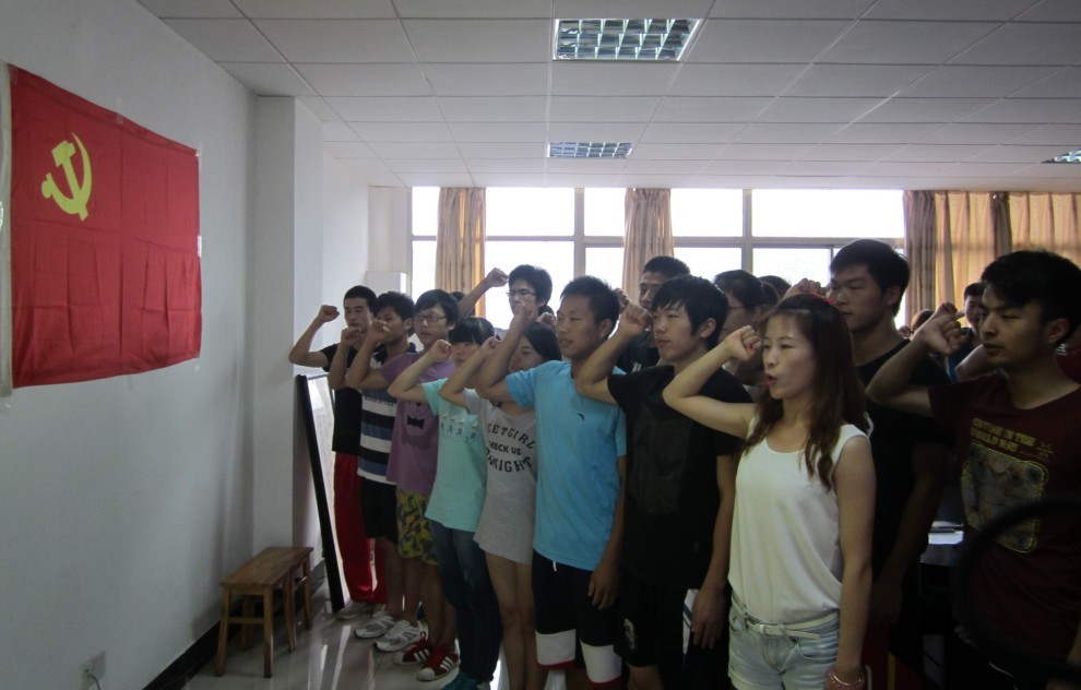 会上,还举行了庄重而简朴的新党员入党宣誓仪式。本学期新发展的15名学生党员面向党旗,高举右手郑重宣誓。神圣庄严的时刻,昂首挺胸的站姿,嘹亮的呐喊震撼人心。宣誓仪式的举行进一步激励了广大学生党员的理想信念并激发了他们的历史使命感、责任感和荣誉感,从而更加坚信党的领导,拥护党、热爱党,力争做一名优秀的共产党员。