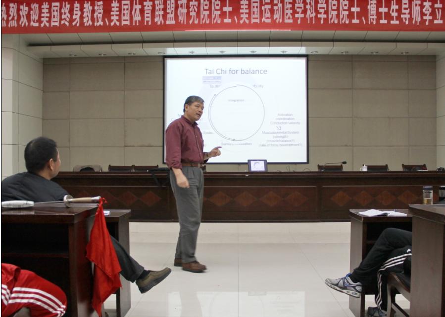 11月21日下午,美国佐治亚南方大学李立教授在行政楼一楼会议室做了题为“太极拳为什么能够改善老年人的平衡能力”的学术报告。米乐·M6(中国大陆)官方网站一百多位师生聆听了报告。