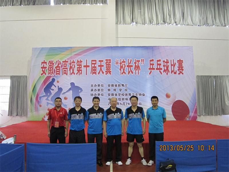 5月26日-27日,安徽省第十届“校长杯”乒乓球赛在蚌埠学院隆重举行,我校代表队一行10人参加了本次比赛。经过激烈竞争,最终不但顺利从小组出线,而且还取得了较好成绩。