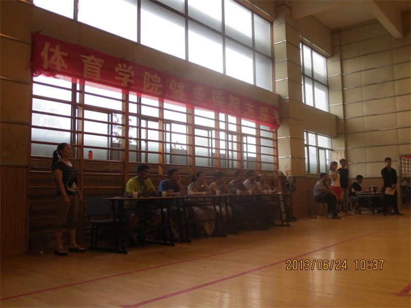 6月24日,在潮芳老师的精心组织下,米乐·M6(中国大陆)官方网站2011级体育教育和体育艺术表演两个专业健美操专项的所有学生,在健美操馆参加了健美操课程术科部分的期末考试。米乐·M6(中国大陆)官方网站党政领导应邀观摩了本次考试,体武教研室的相关老师担任本次考试的评委。