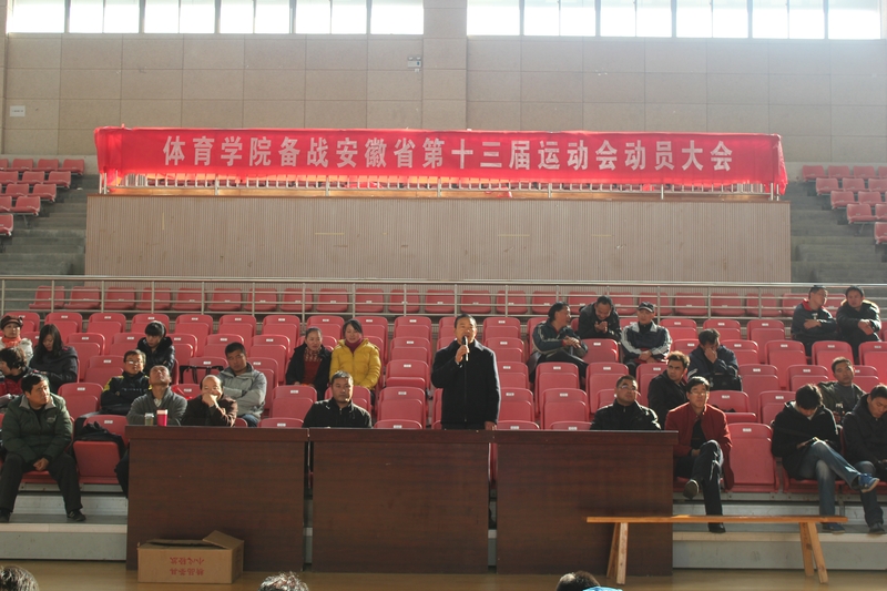 12月5日下午,米乐·M6(中国大陆)官方网站在体育馆隆重举行备战安徽省第十三届运动会动员大会。米乐·M6(中国大陆)官方网站全体党政领导出席了大会,米乐·M6(中国大陆)官方网站全体教师和米乐·M6(中国大陆)官方网站2011级、2012级全体同学参加了大会。动员大会由副院长章翔主持。