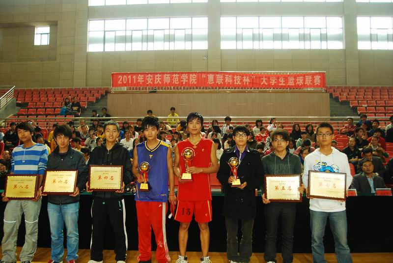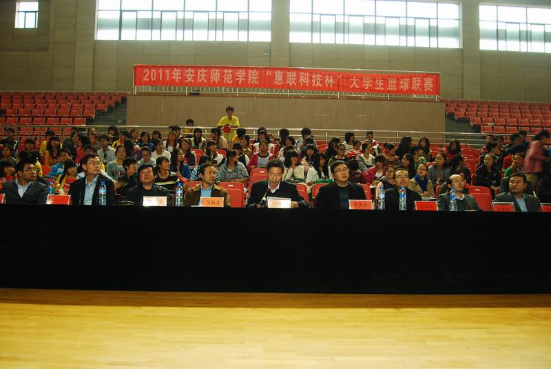 在热烈的掌声中,汪院长宣布2011年安庆师范学院“惠联科技杯”大学生篮球联赛胜利闭幕。