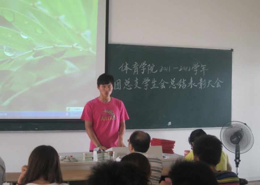 学生会各部门及主席团代表就本学年各部门工作以及学生会整体工作进行总结汇报。学院团学工作助理、体育教育专业2010级4班团支部书记张军军同学作为团干代表发言。