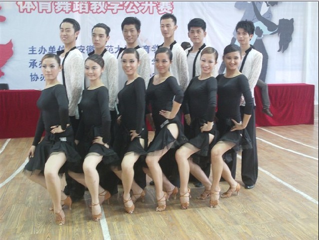 5月26日,安徽省首届体育舞蹈教学公开赛在安徽师范大学隆重举行,全省共有来自九所高校的近四百名学生报名了参加了比赛。我校体育艺术表演和体育教育两个专业共29名学生在夏尚群、汪洋、潘磊老师的带领下参加了本次比赛。最终经过顽强拼搏,在拉丁团体舞比赛中,我校代表队获得了第一名;在拉丁舞指定动作、自选动作和单人动作等不同组别中,我校学生共有14人获得一等奖,17人获得二等奖,15人获得三等奖。另外,夏尚群老师被评为本次比赛的“优秀教练员”;汪洋和潘磊两位老师被授予“优秀裁判员”称号;安庆师范学院代表队还荣获 本次比赛的“优秀组织奖”。