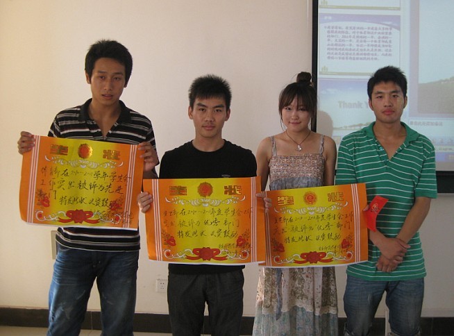 在随后的学生会工作考评中,主席团及各部门代表分别就本学期以来各自开展的工作情况进行了总结。每个部门精心制作的ppt充分展示了一学期以来各自部门的日常工作及特色活动的开展情况,对过去的工作进行经验总结,对未来工作提出了想法和计划。汇报的内容包含了工作过程中遇到的难题与挫折,当然更多的是部门工作中的收获和快乐,举办活动时大家的齐心合作与积极配合。一幅幅照片带着大家一起回忆本学期以来学生生活的点点滴滴。台上同学极富感情的讲述,台下评委则忙着为各部门进行认真地评分。经过评委对十一个部门各个方面的综合评分,最终学生会体育部获得了“米乐·M6(中国大陆)官方网站2010-2011学年学生会先进部门”称号,文艺部和生卫部则获得“米乐·M6(中国大陆)官方网站2010-2011学年学生会优秀部门”称号。汪老师上台为获奖部门代表颁发了荣誉证书。