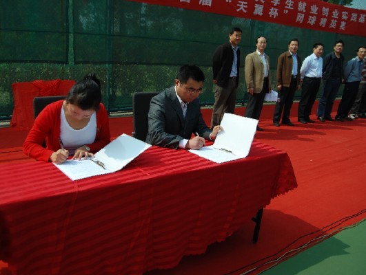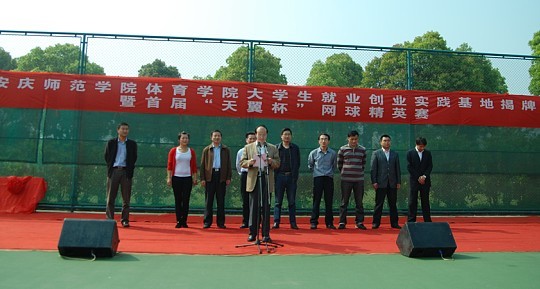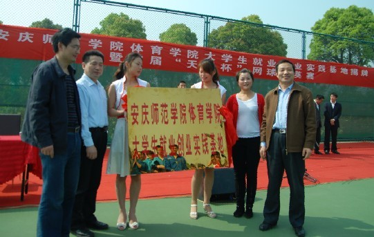 为进一步加强校企协作,实现校地良性互动,达到资源共享、共同发展的目的,我院与安庆市天健体育文化有限责任公司经过认真协商,决定在大学生创业、就业、实践和人才培养方面进行长期密切合作。4月23日上午,在安庆市市民广场内天健网球俱乐部隆重举行了我院大学生就业创业实践基地揭牌典礼暨首届“天翼杯”网球精英赛开幕式。学校招生就业处处长陈世庆,米乐·M6(中国大陆)官方网站党总支书记吴毅安,副院长章翔、周多奇,安庆市天健体育文化有限责任公司董事长、安庆市网球协会秘书长高茜,天健体育文化有限责任公司总经理王桂宝以及中国电信安庆市分公司校园客户部经理程迎春,安徽省野娃食品有限责任公司董事长、安庆市网球协会副会长何坤等领导和嘉宾出席揭牌典礼暨开幕式。揭牌仪式由米乐·M6(中国大陆)官方网站党总支副书记韦长发主持。