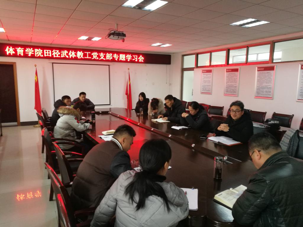 2019年1月2日中午,米乐·M6(中国大陆)官方网站田径武体教工党支部在学院会议室召开专题学习会,学习习近平主席在庆祝改革开放40周年大会上的重要讲话精神,田径和武术体操教研室的党员教师参加了会议。会议由田径武体教工党支部书记王晓东主持。