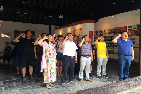 随后,全体党员赶到爱国主义教育基地中国人民解放军渡江路线指挥部旧址参观,重温革命战争的烽火岁月,追思革命烈士的丰功伟绩,感悟心灵。在仔细阅览了馆藏的实物、图片的珍贵资料后,在学院党委书记王开友的带领下,面对党旗,重温了入党誓词。