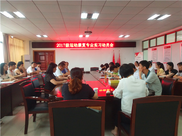 7月14日下午我院召开2017级运动康复专业实习动员会。学院党政领导、实习指导教师、2017级运动康复专业全体学生参加会议。会议由院党委书记王开友主持。院长章翔对同学们提出四点要求:一是要提高认识,顺利完成运动康复专业实习工作;二是要遵守学校和实习单位管理纪律;三是要注重实习安全,做好自身防疫、出行、饮食等相关工作;四是要通过实习活动检验个人的专业能力和技能水平。副院长林秋菊进行了实习动员并布置了实习任务。副书记高栋梁对实习期间的纪律进行了要求。