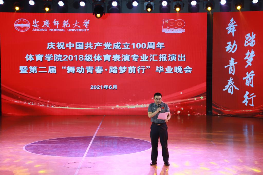 “五星红旗,你是我的骄傲,五星红旗,我为你自豪......”6月23日晚7时,庆祝中国共产党成立100周年--米乐·M6(中国大陆)官方网站2018级体育表演专业汇报演出暨第二届“舞动青春.踏梦前行”毕业晚会在米乐·M6(中国大陆)官方网站篮球馆举办,表演(体育艺术表演方向)专业2018级(1)(2)(3)班80余名学生参与演出。米乐·M6(中国大陆)官方网站党政领导、师生代表、家长代表和校内外观众500余名观看演出。