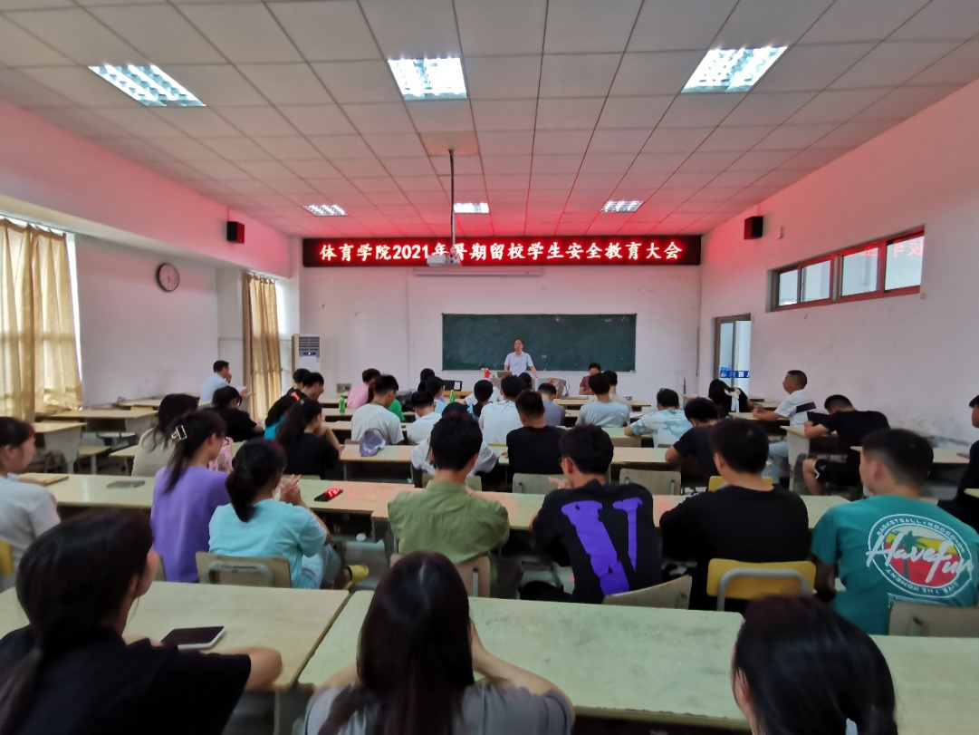 为落实好暑期学生留校教育与管理工作,7月9日,学院在体育馆多媒体教室召开2021年暑期留校学生安全教育大会,学院党委副书记高栋梁、留校学生班级辅导员和教师代表出席会议,全体留校学生参加会议,会议由专职辅导员储著奇老师主持。