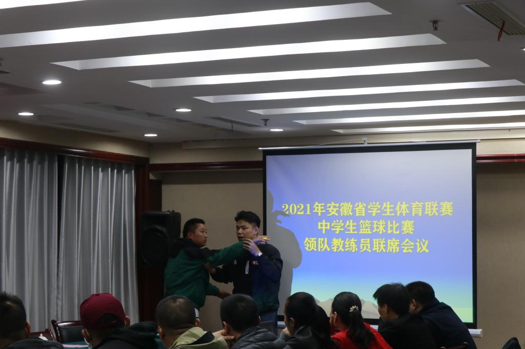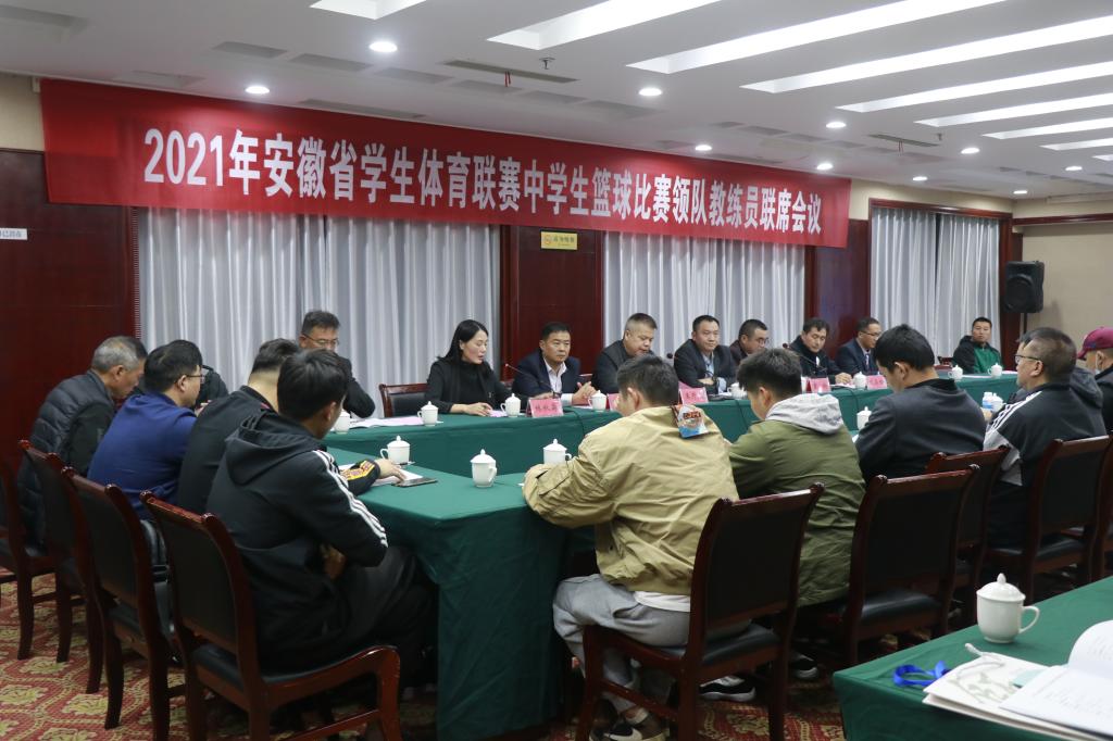 为推动青少年学生篮球活动的开展,提高安徽省高中学生篮球运动竞技水平,10月17日-,2021年安徽省学生体育联赛中学生篮球联赛组委会全体会议在安庆举行。安徽省教育厅体卫艺处干部、安徽中医药大学体育健康学院直属党支部书记、副院长夏宏武,安徽经济管理学院武昌桥,安徽交通职业技术学院万一春,米乐党委书记王开友,党委副书记、纪委书记高栋梁,副院长林秋菊以及来自9地市的代表队领队、教练员出席了会议。会议由米乐院长章翔主持。