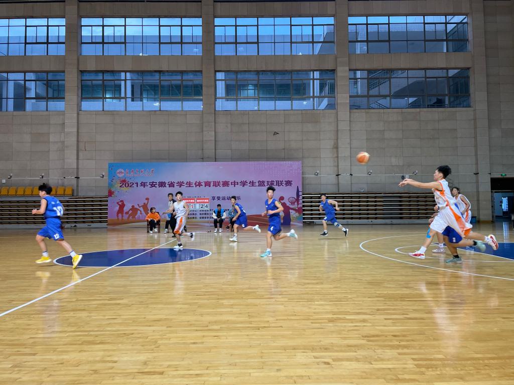 2021年安徽省学生体育联赛中学生篮球联赛由安徽省教育厅、安徽省体育局主办,安庆师范大学承办,安徽省学校体育协会协办。来自全省的15支代表队(其中男队8支队伍、女队7支队伍),共180名运动员(其中男队员96人,女队员84人)参加了比赛。(撰稿、摄影:游长江 审核:林秋菊)